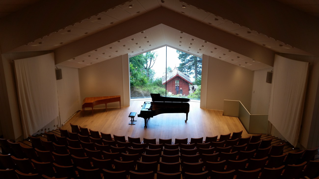 Itt ebédidőben félórás zongorakoncertet is adnak, melyre a városi turistainformációs iroda elől indulnak buszok. Ha az ember ki akar szakadni Bergen turistaáradatából, itt lelket simogató nyugodt környezetben, csodálatosan megépített hangversenyteremben pihenhet meg.