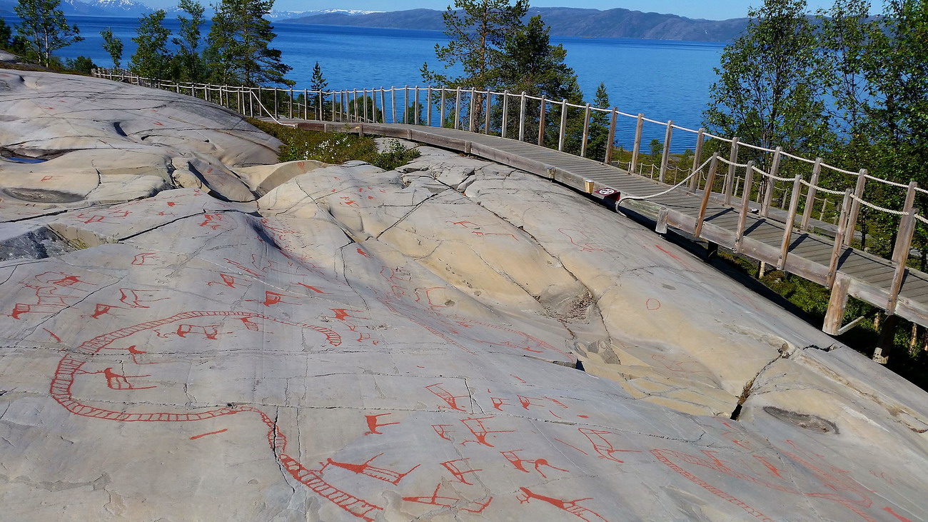 A legészakibb világörökségi helyszín az altai sziklarajzok, ahova Trondheimből utaztam lélegzetelállítóan szép úton. Bár a buszon magam mellé készítettem könyvet és zenét, végül hat órán keresztül mást se csináltam, csak a fényképezőgépet kattintgattam. Nagyon sajnáltam, hogy nem autóval tettem meg ezt a szakaszt, mert legszívesebben minden kanyarban leálltam volna nézelődni és fotózni, bár akkor talán a mai napig sem értem volna Altába.