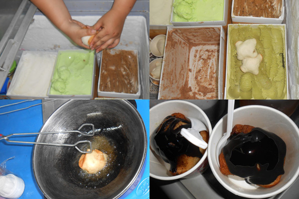 20 bath (170 Ft) próbáljátok ki! – ajánlották és vettünk két adagot. Kívül ropogós és forró, belül hideg és krémes. Ezt hogy csinálják? Mit raknak a fagyira? Palacsintatészta? Miből van? Hogy marad hideg a fagyi? Megannyi este, még több elfogyasztott fagyi és nem jövünk rá a titokra, majd egyik alkalommal megláttuk a toast-kenyeret. Nem akartunk hinni a szemünknek! Fognak egy szeletet, belenyomnak egy gombóc fagyit, kicsit összetapogatják, majd vissza a fagyasztóba, amíg felhevül az olaj. 4-5 perc telik el majd hirtelen kisütik, épp hogy ropogóssá váljon a kenyér. Kenyér!